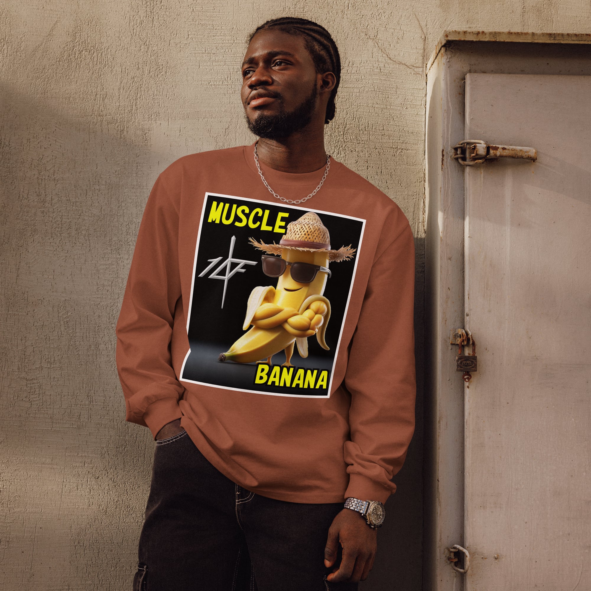 この【10FIT】TE-P0008ロンTは、オーバーサイズデザインとマッスルバナナのアートが特徴的なアイテムです。