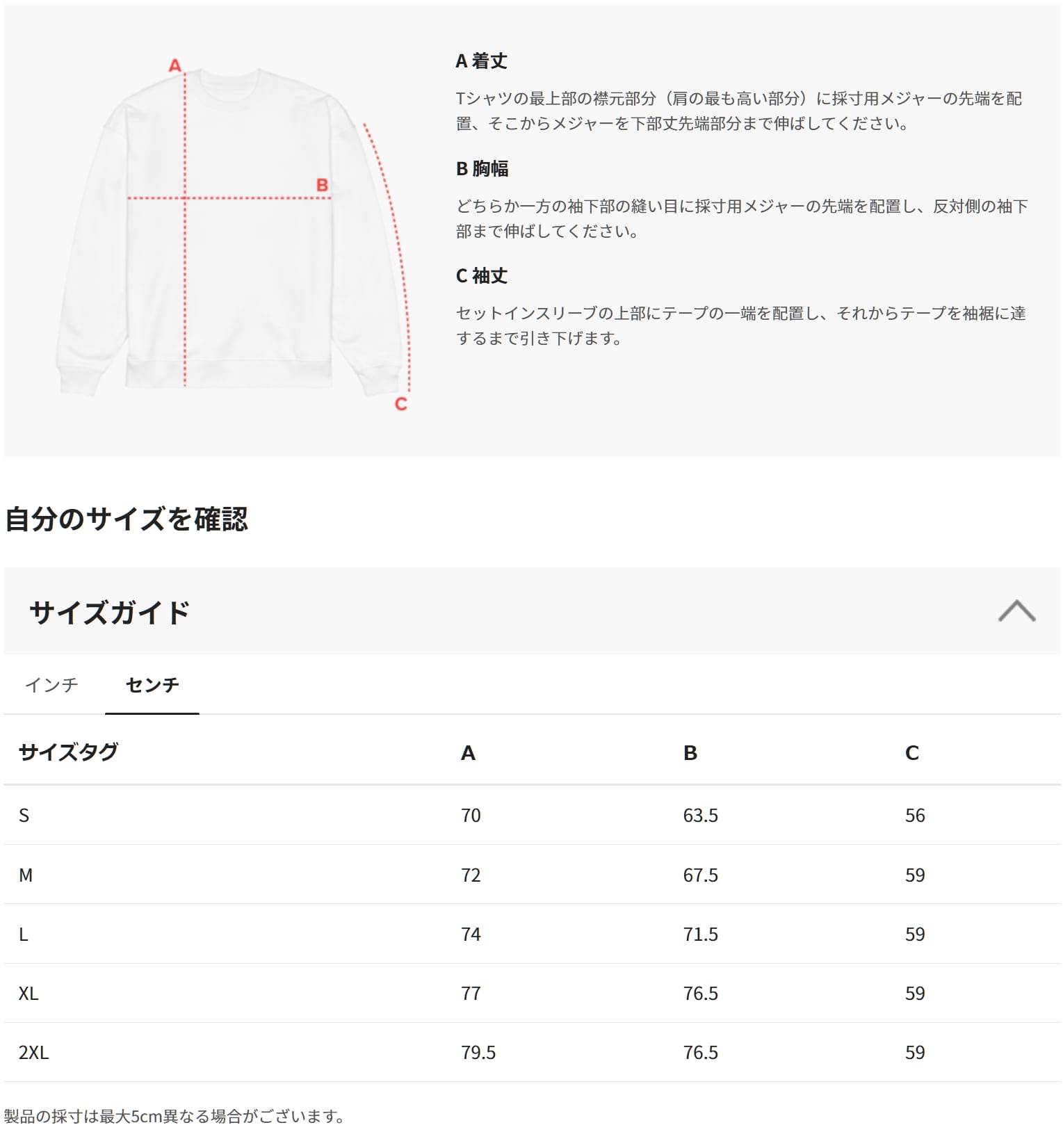 サイズ 着丈 胸幅 袖丈