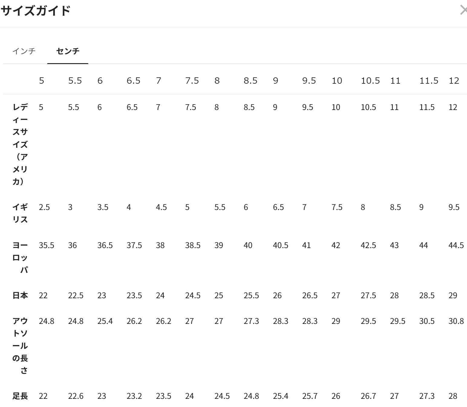このシューズはアメリカサイズで設定されています。
