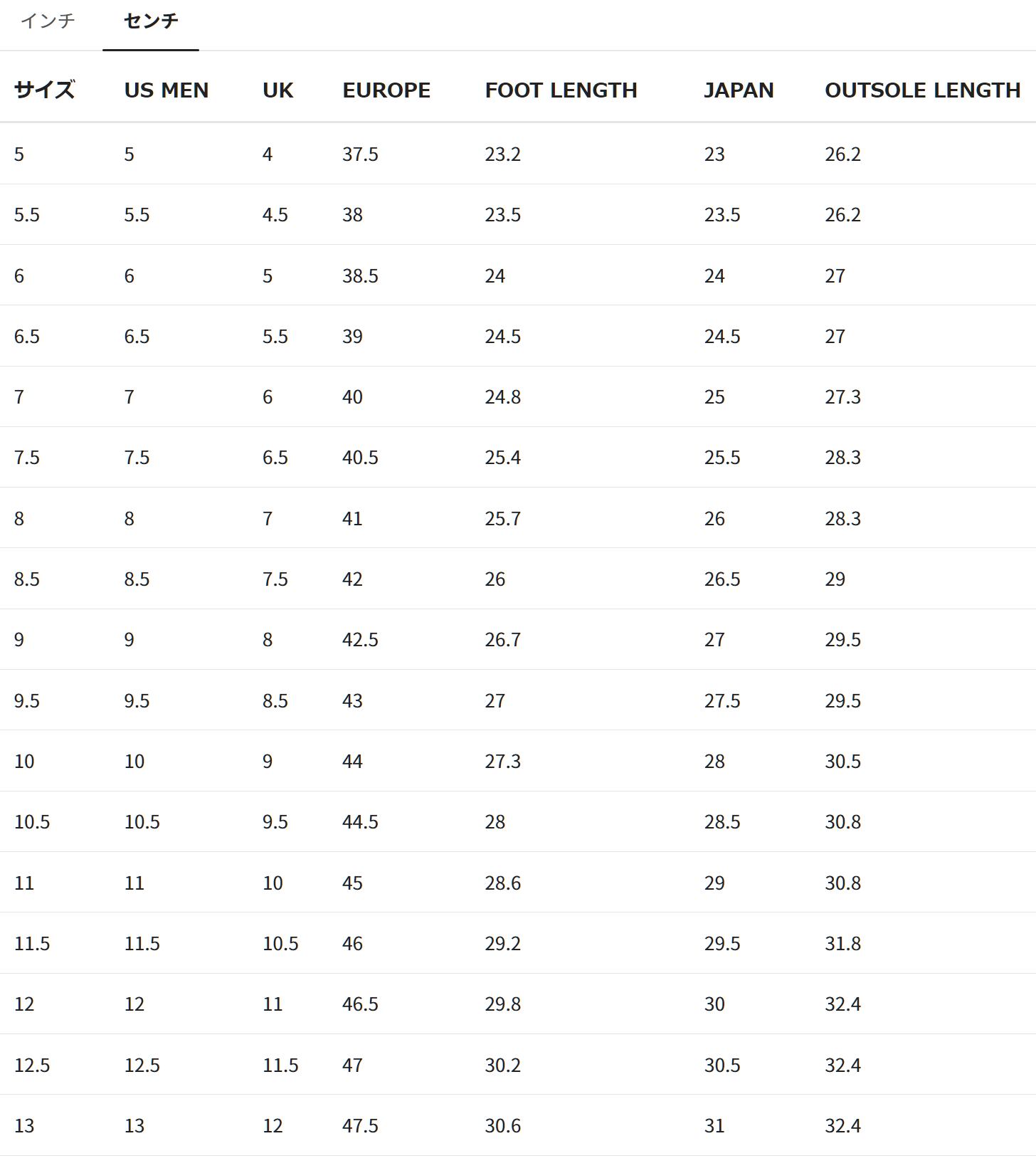 このスニーカーはアメリカサイズで設定されています。