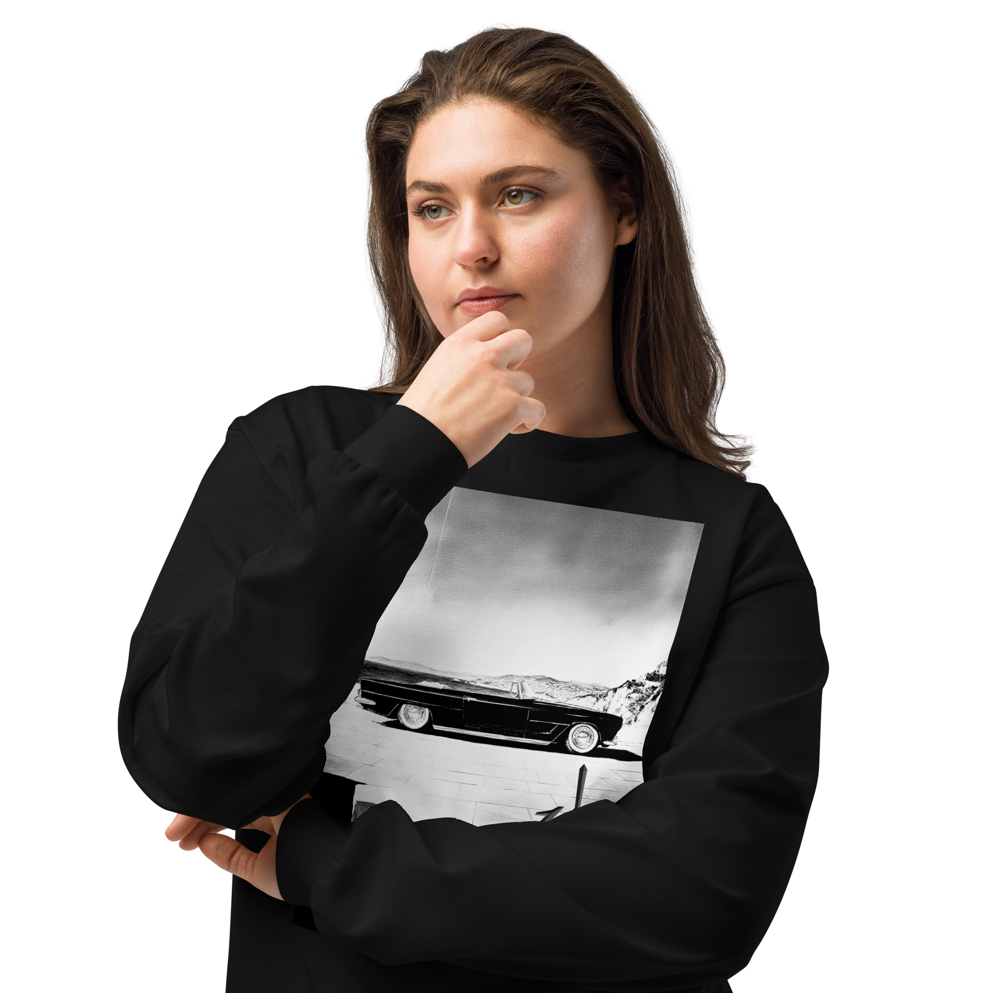 フロントにクラッシックカーをビンテージのイメージデザインしプリント