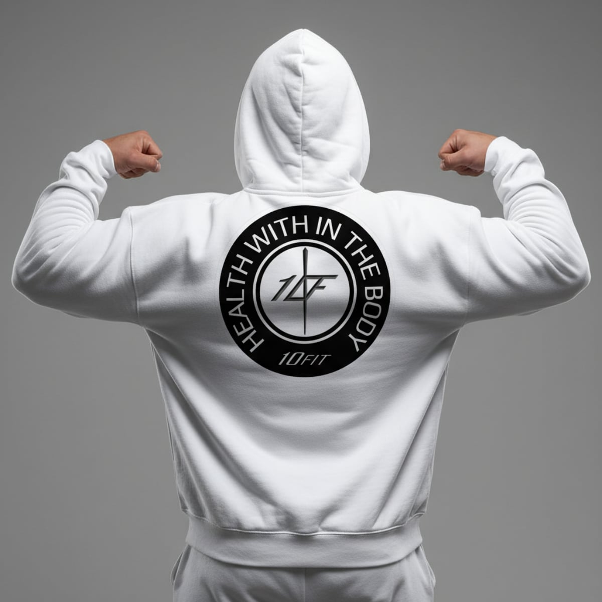 背中に丸く10FITのロゴとデザインをプリント