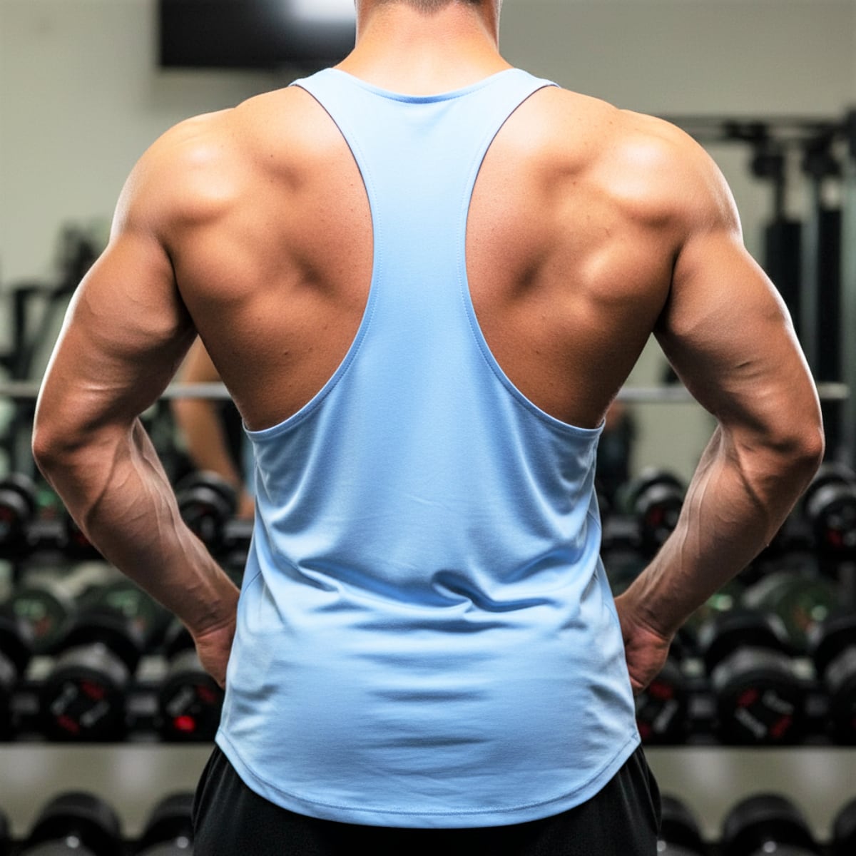胸と背中が大きく開いたストリンガータンクトップ